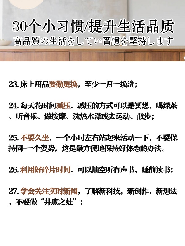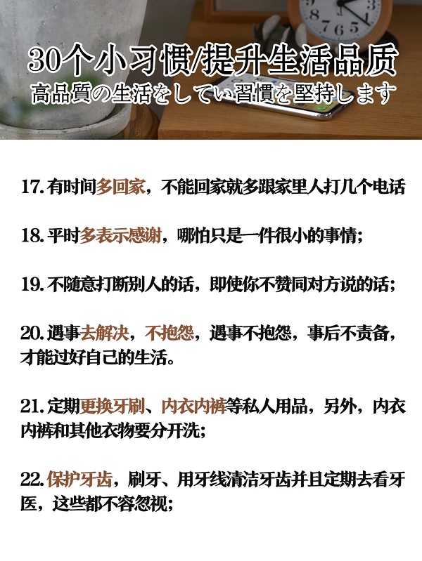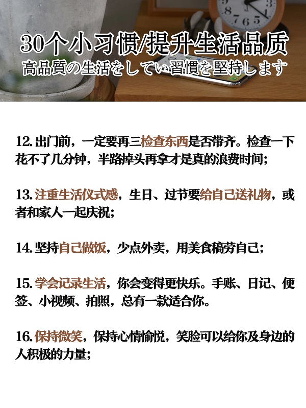 今天分享30個好習(xí)慣,從日常小事做起,自我提升,升級你的生活。