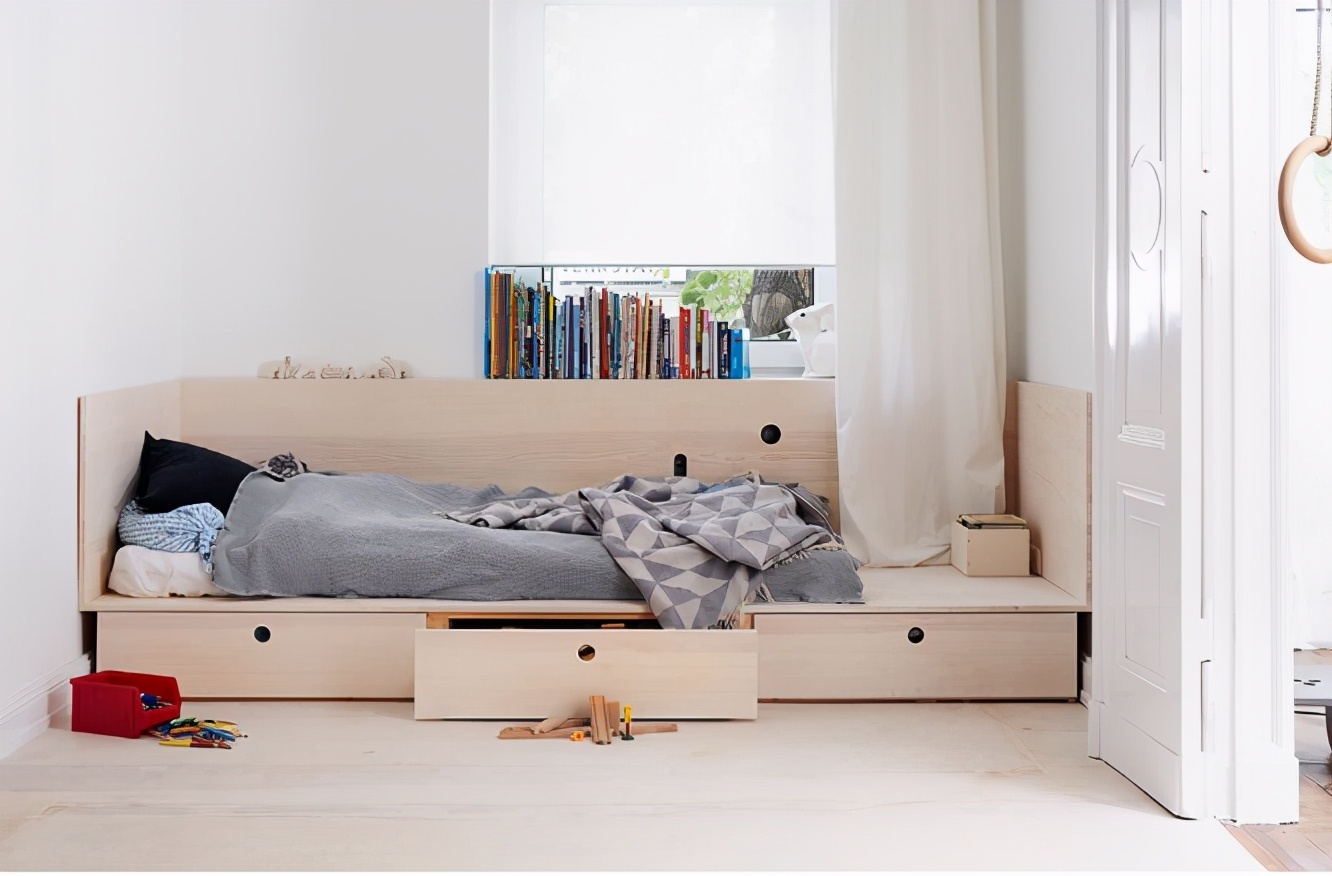 是的,小戶型的裝修最大的難題就是收納。解決的最大方法就是小角落的利用設(shè)計(jì),別再把床下這2、3㎡浪費(fèi)掉了,抬高做抽屜式收納,既能擁有一個(gè)小衣帽間,還能很...
