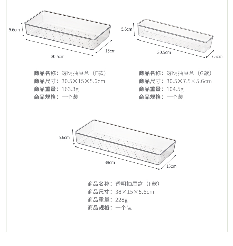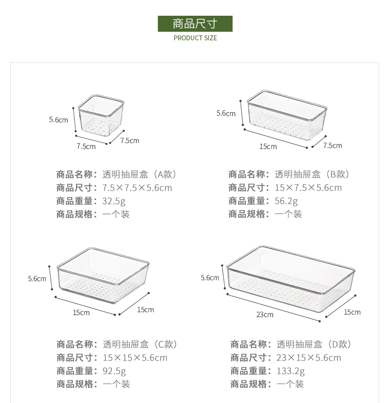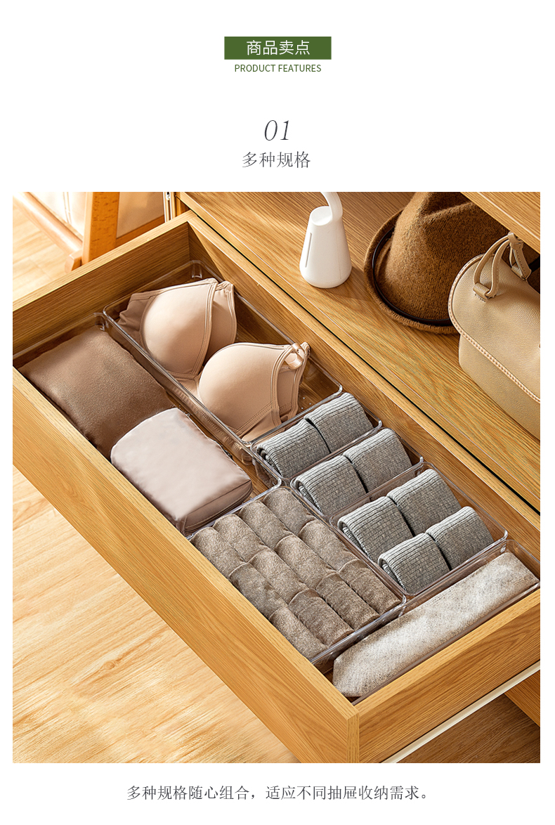 1、多種規(guī)格:隨心組合,適合不同抽屜收納需求