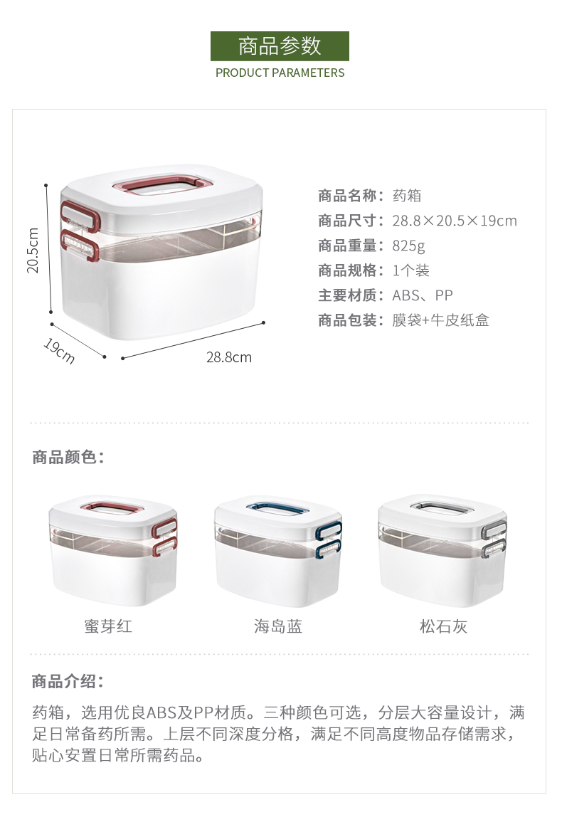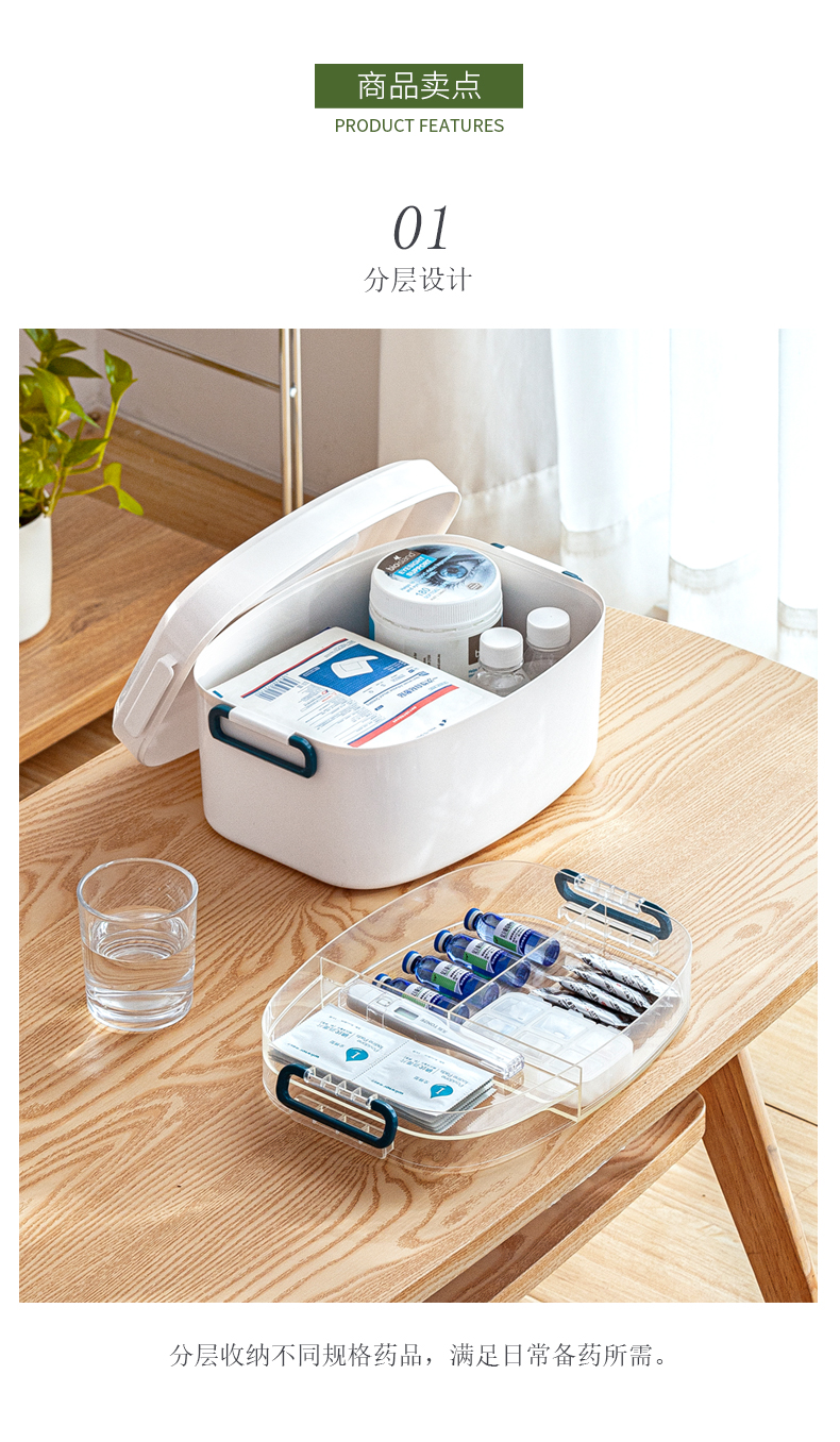 2、分層設(shè)計(jì):分層收納不同規(guī)格藥品,滿足日常備藥
