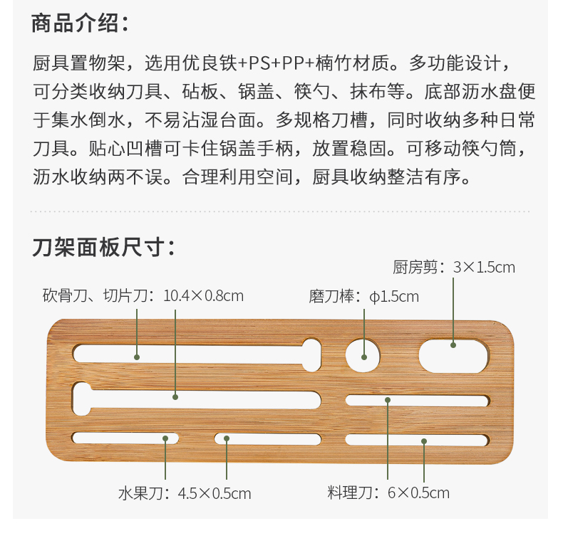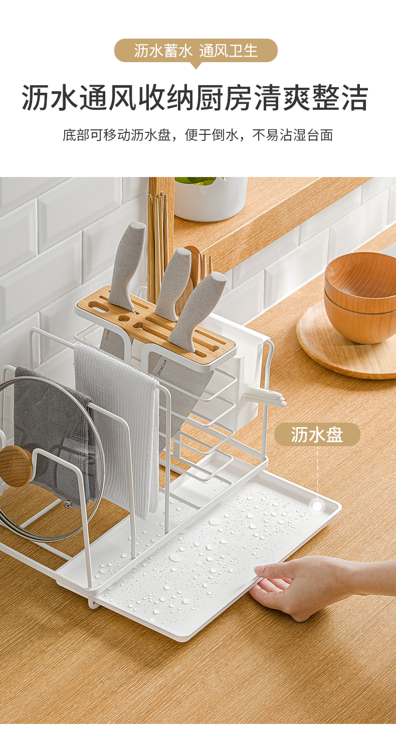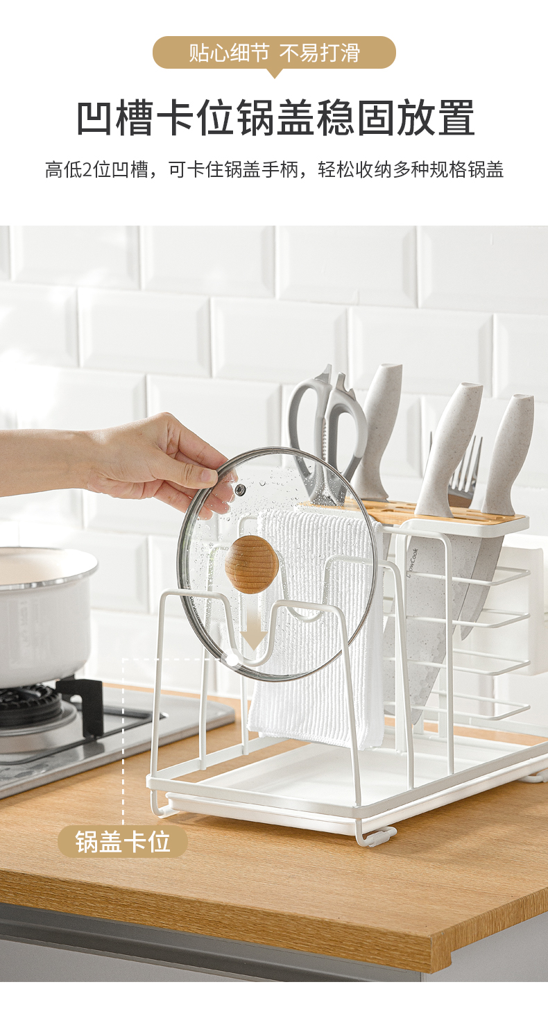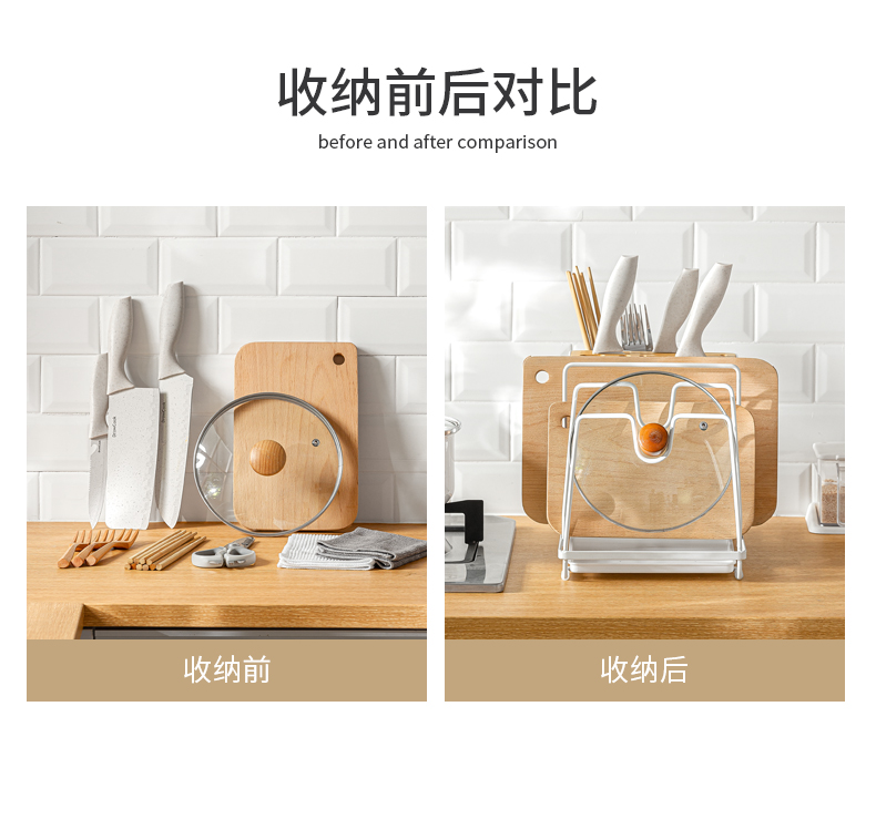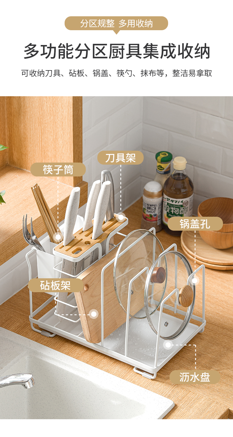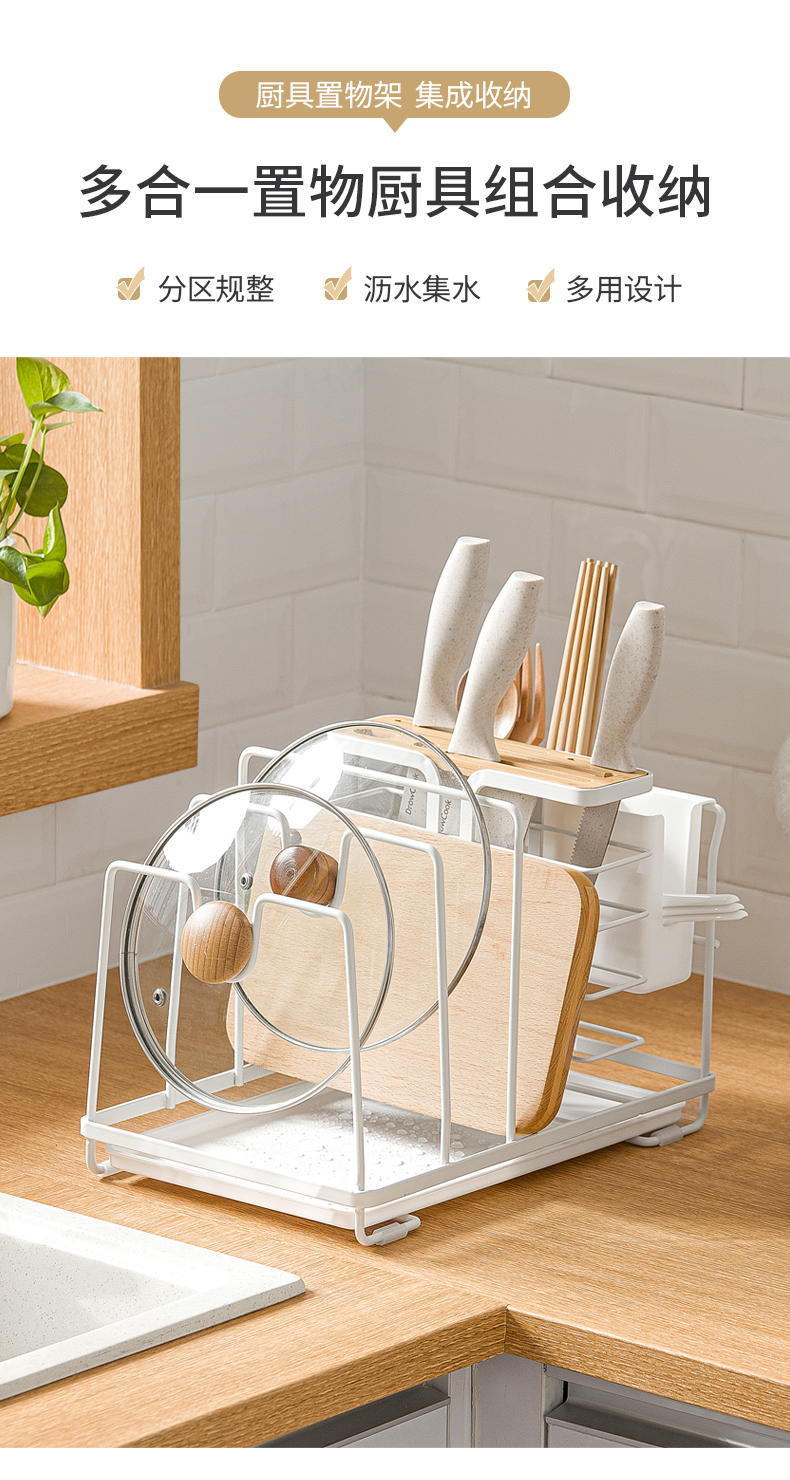 1、分區(qū)規(guī)整:可收納刀具、砧板、鍋蓋、筷勺、抹布等