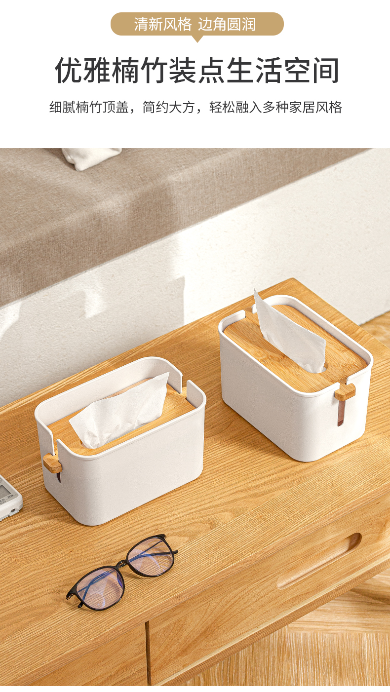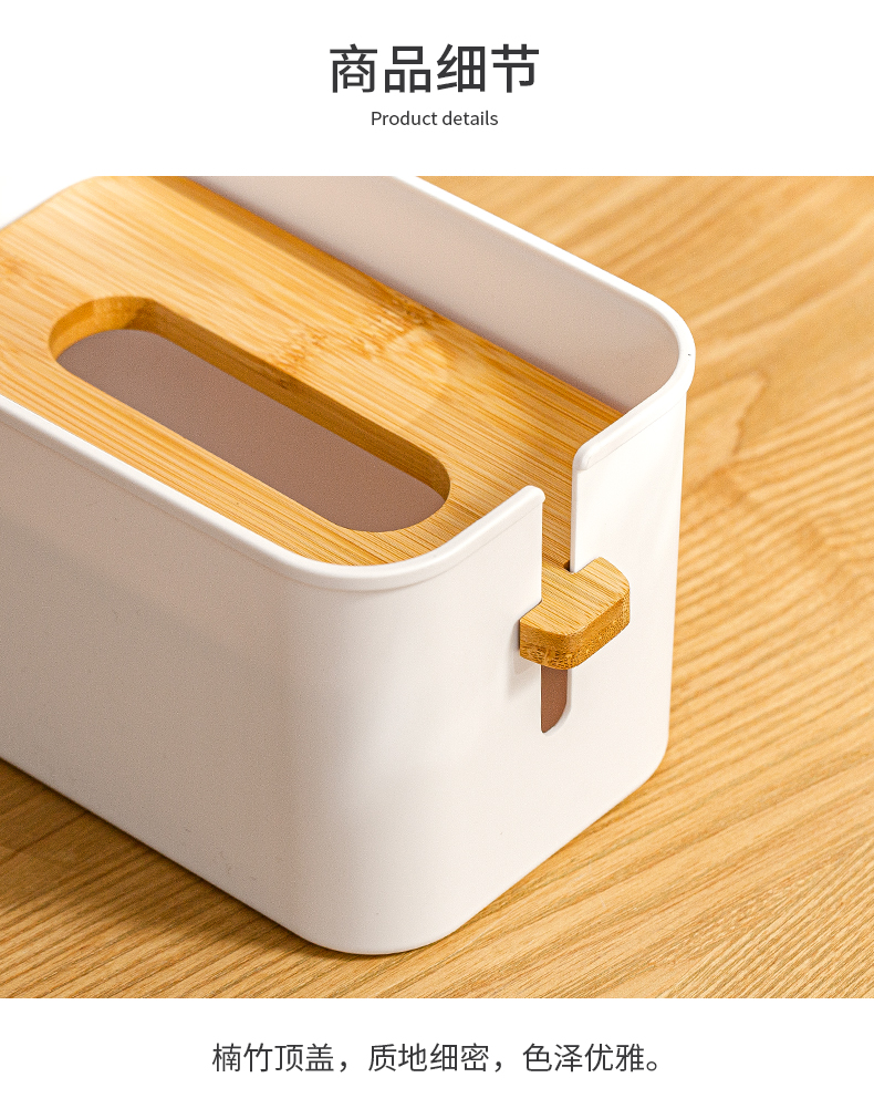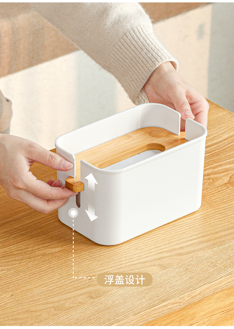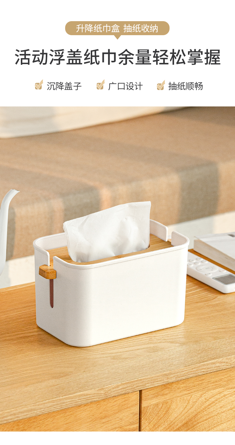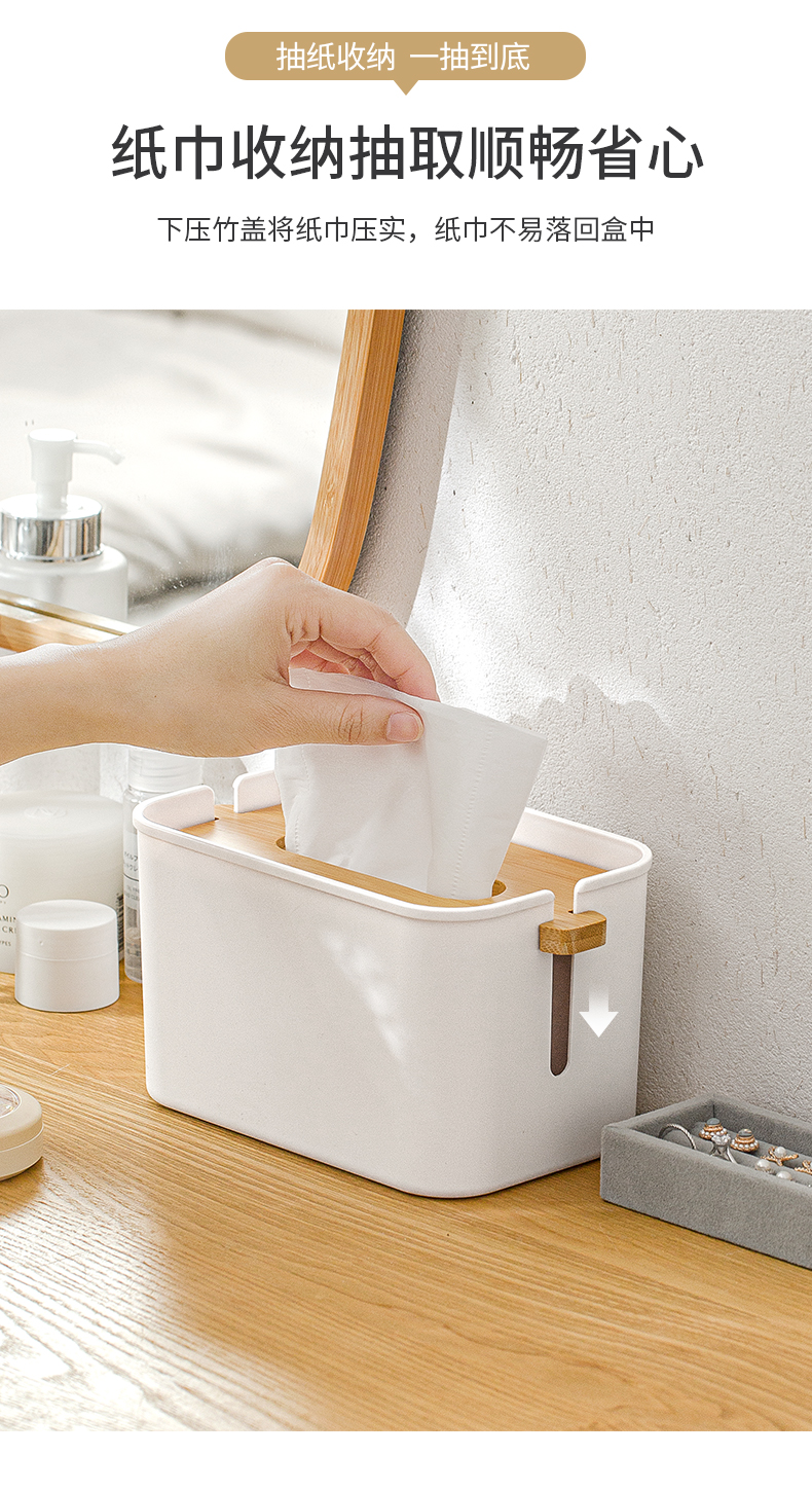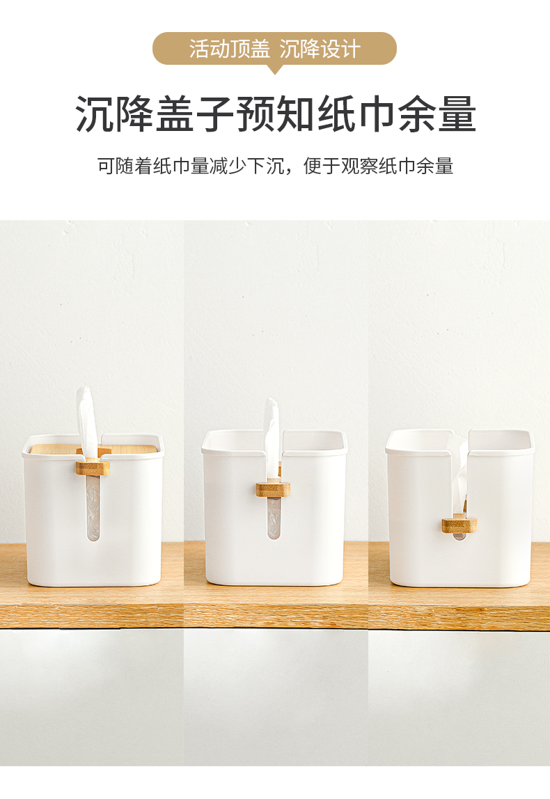 2、紙巾不掉落:下壓竹蓋將紙巾壓實(shí),紙巾不易落回